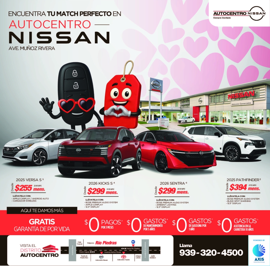 Los precios y pagos aquí reflejados no incluyen seguros, tablillas, ni ACAA. Licencia y gastos de registro varían. $0 deducible en hojalatería en estimados que sobrepasen los $2,500 por Smile Collision Center.Ninguna oferta puede ser combinada con otra. Ofertas sujetas a contrato de servicio. Todos los financiamientos y ofertas están sujetos a aprobación de crédito en adición a parámetros establecidos por la entidad de financiamiento. Ninguna oferta puede ser combinada con otras, ciertas restricciones aplican. Algunos modelos podrían no ser igual al ilustrado. Toda oferta mostrada y mencionada aquí son sujetas a aprobación de crédito. Unidades anunciadas son sujeto a disponibilidad de inventario. Ciertas restricciones aplican. Sujeto a aprobación de crédito. Ofertas válidas hasta el 15 Febrero de 2026 o mientras duren las unidades.